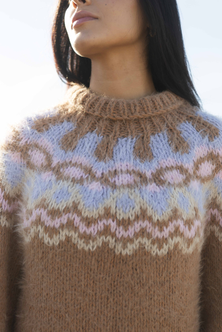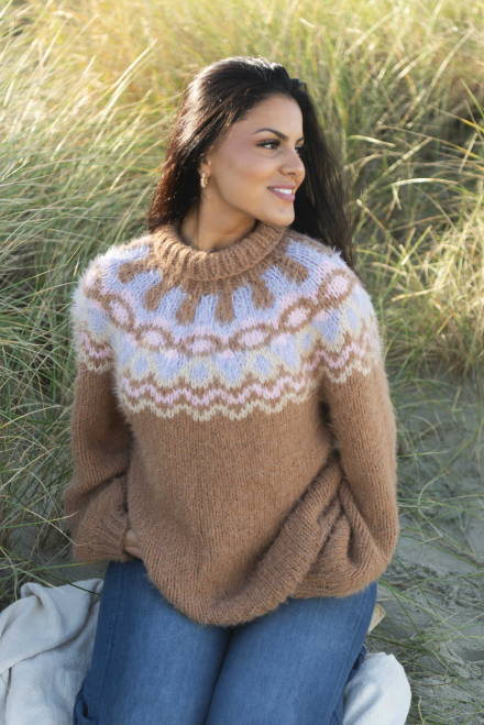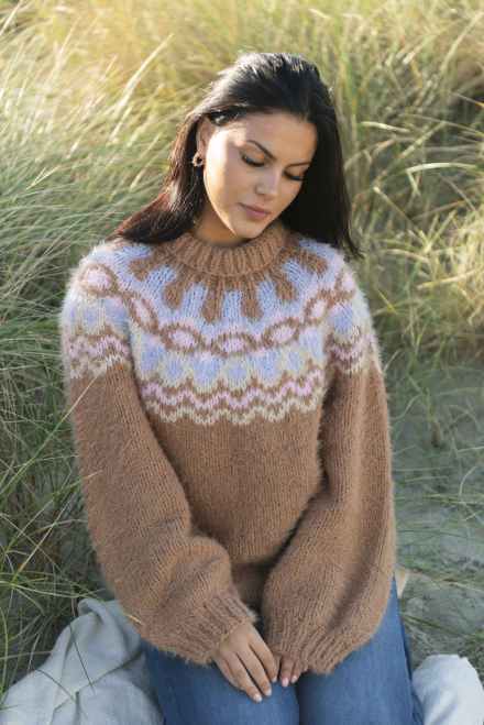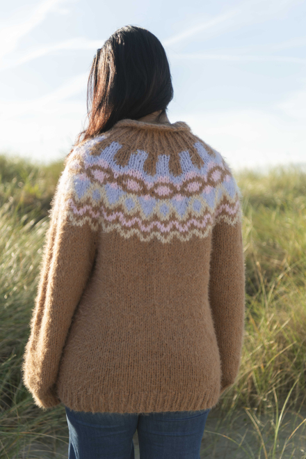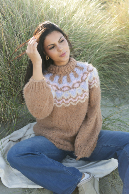 Alle vores strikkepakker indeholder mønster og komplet garnforbrug til ønsket størrelse, såfremt de angivne mål og strikkefasthed overholdes. Strikkepinde, knapper og andet tilbehør købes separat.