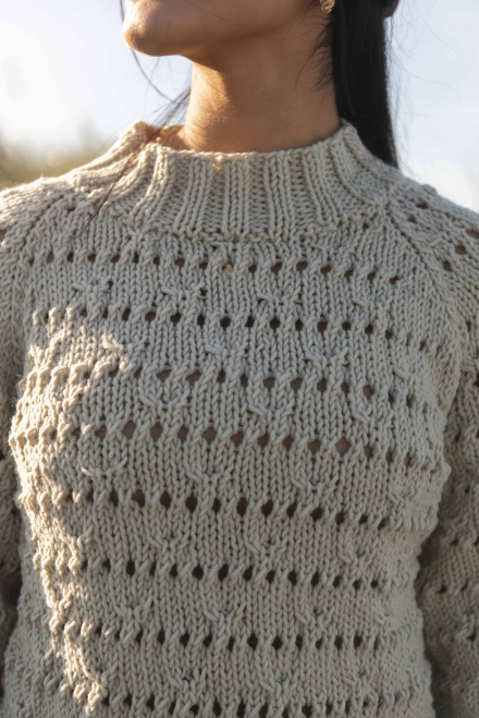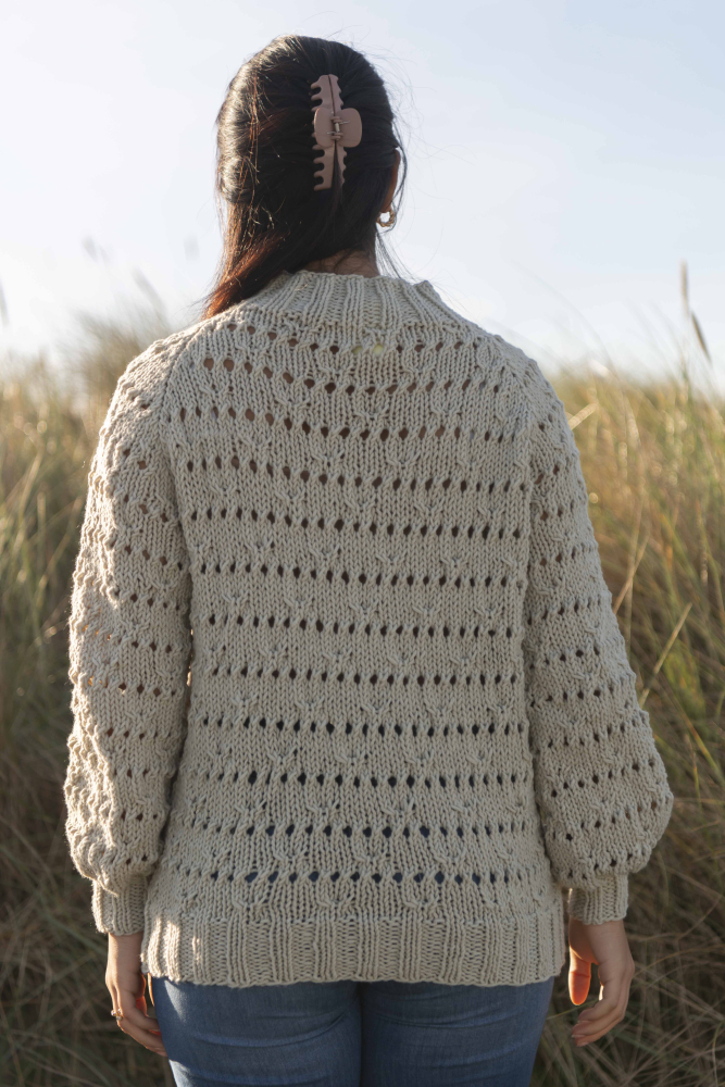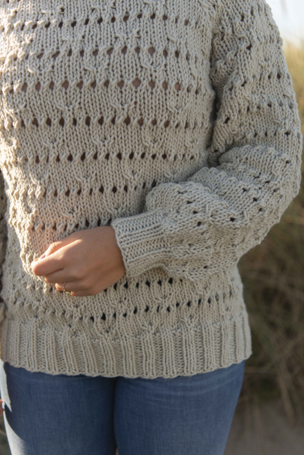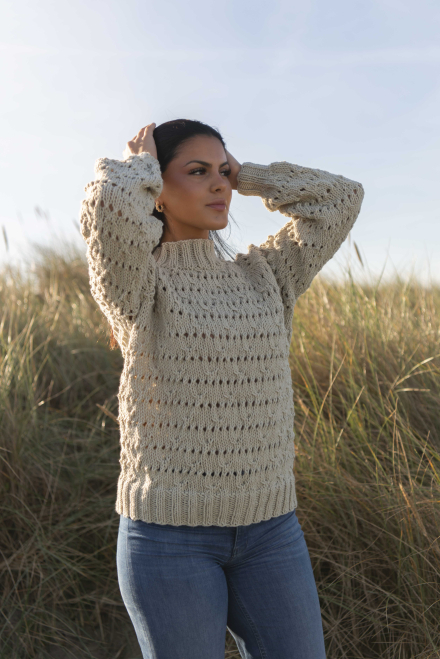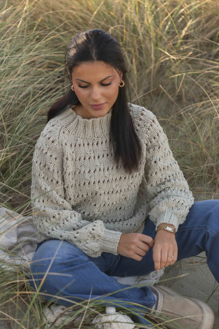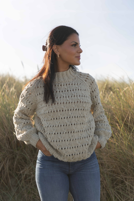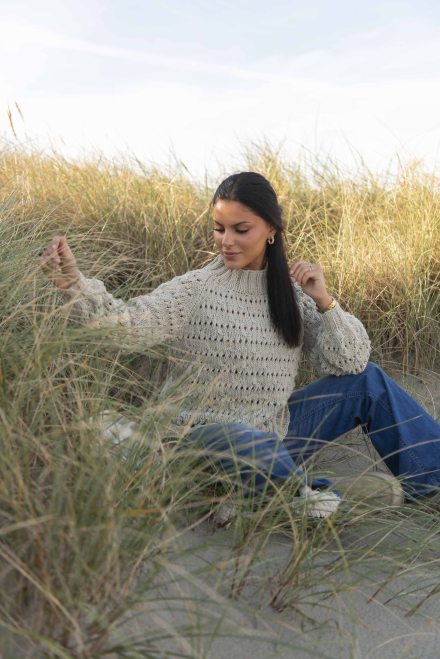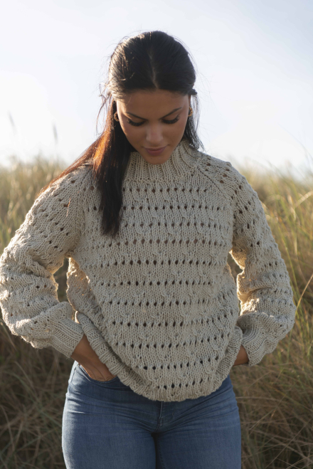 Alle vores strikkepakker indeholder mønster og komplet garnforbrug til ønsket størrelse, såfremt de angivne mål og strikkefasthed overholdes. Strikkepinde, knapper og andet tilbehør købes separat.