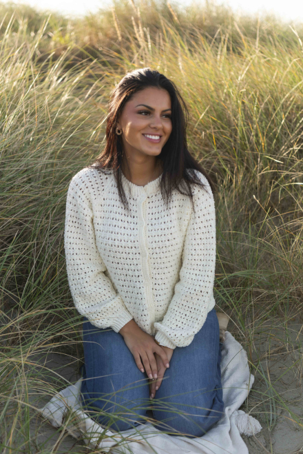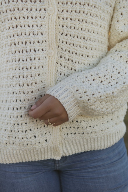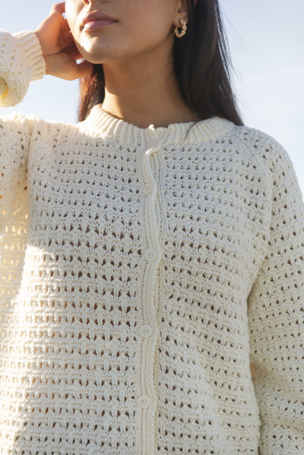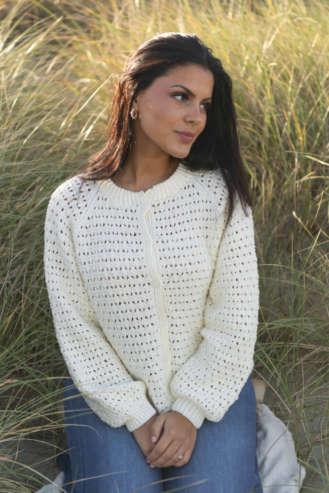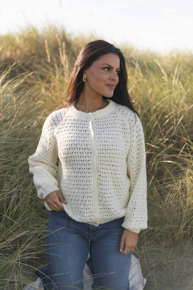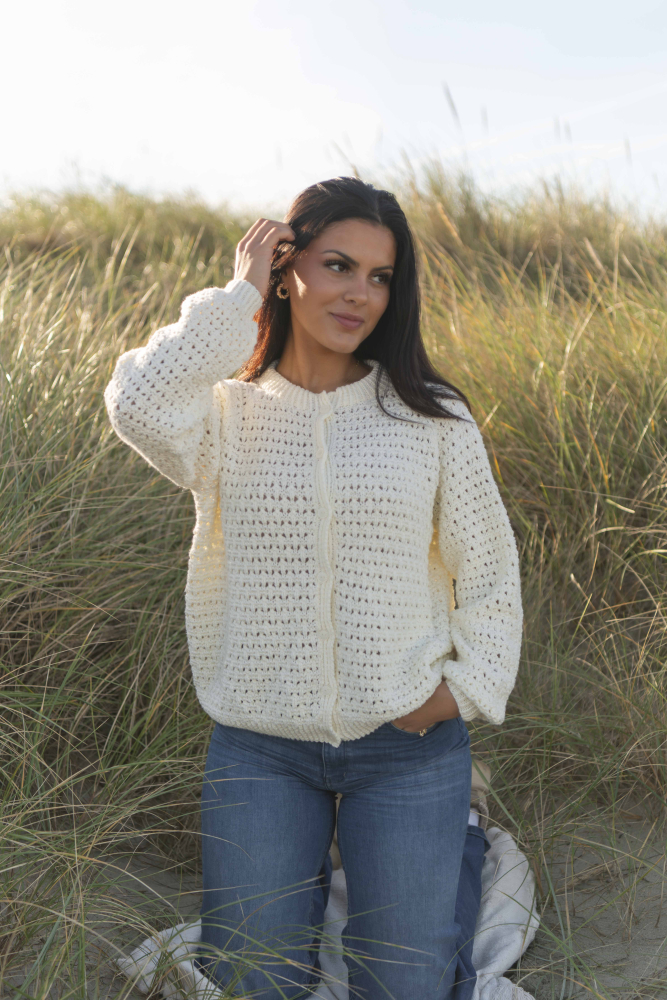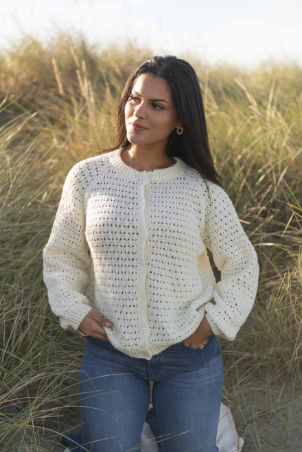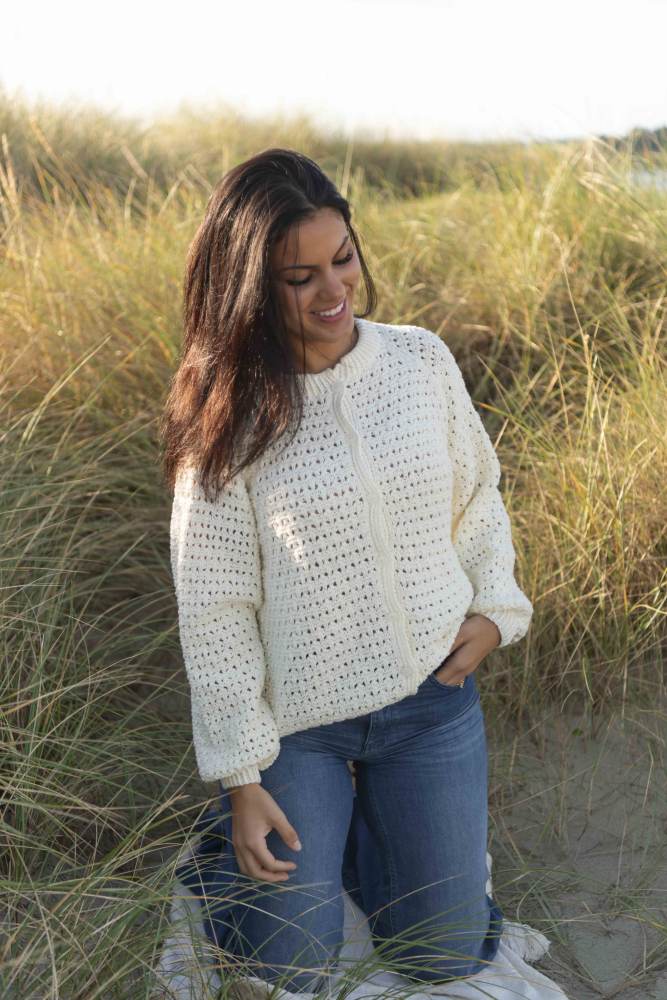 Alle vores strikkepakker indeholder mønster og komplet garnforbrug til ønsket størrelse, såfremt de angivne mål og strikkefasthed overholdes. Strikkepinde, knapper og andet tilbehør købes separat.