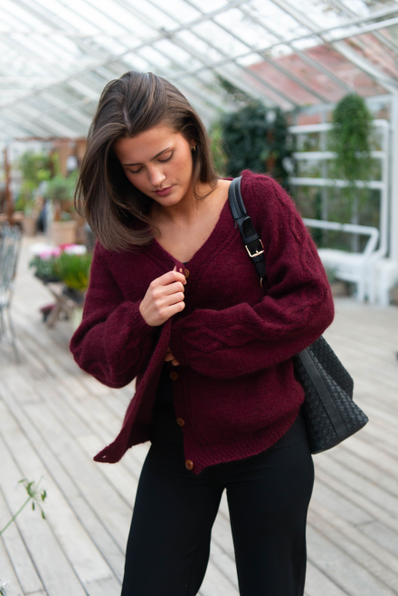 Alle vores strikkepakker indeholder mønster og komplet garnforbrug til ønsket størrelse, såfremt de angivne mål og strikkefasthed overholdes. Strikkepinde, knapper og andet tilbehør købes separat.