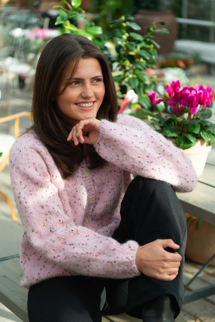 Alle vores strikkepakker indeholder mønster og komplet garnforbrug til ønsket størrelse, såfremt de angivne mål og strikkefasthed overholdes. Strikkepinde, knapper og andet tilbehør købes separat.