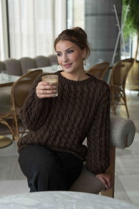 Du kan selv ændre farven på strikkepakken; vælg først den størrelse du vil strikke, så vises udvalget af farver herunder. Bemærk! Strikkeopskriften leveres altid i strikkepakkens originale farver: mørkbrun og lys beige meleret