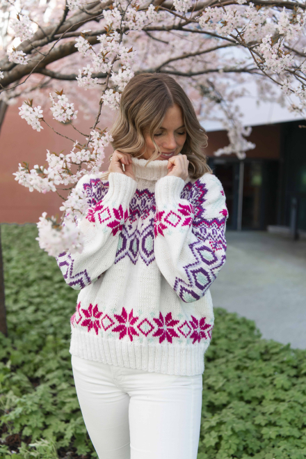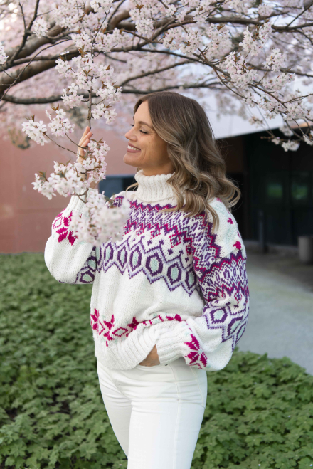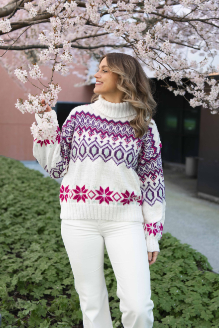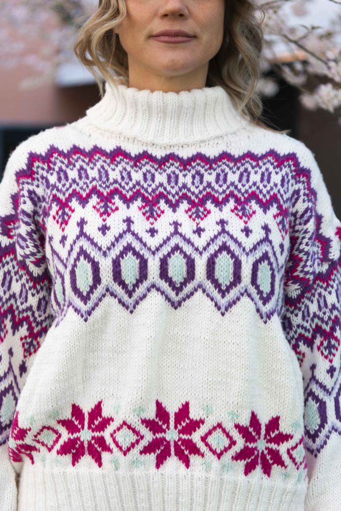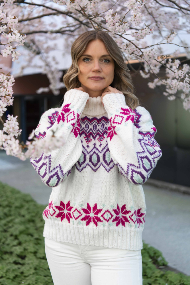 Du kan selv ændre farven på strikkepakken; vælg først den størrelse du vil strikke, så vises udvalget af farver herunder. Bemærk! Strikkeopskriften leveres altid i strikkepakkens originale farver: hvid, lilla, lys lilla, pink og mintgrøn