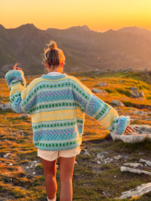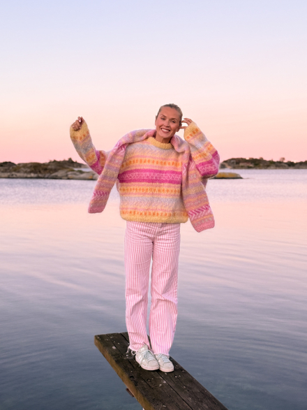 Alle vores strikkepakker indeholder mønster og komplet garnforbrug til ønsket størrelse, såfremt de angivne mål og strikkefasthed overholdes. Strikkepinde, knapper og andet tilbehør købes separat.