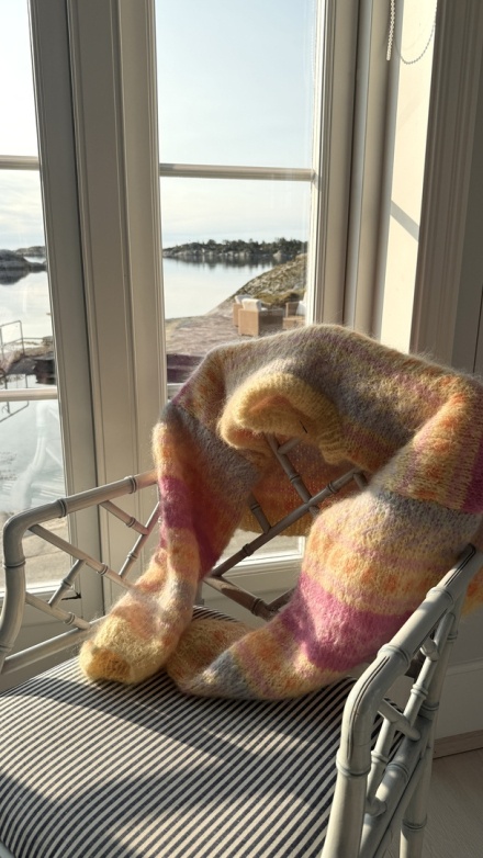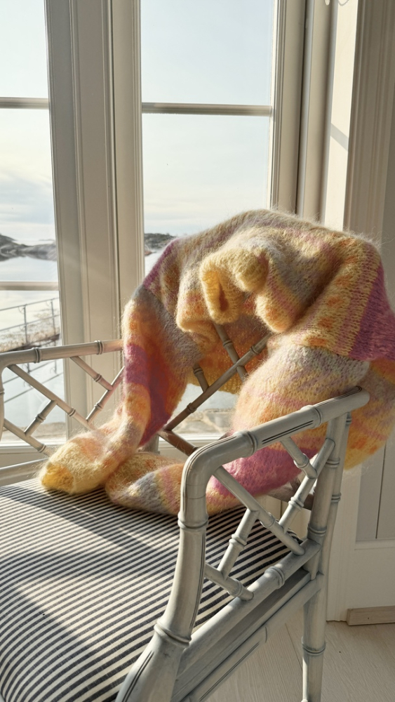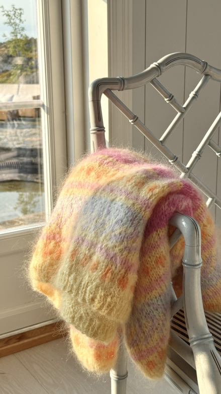 Du kan selv ændre farven på strikkepakken; vælg først den størrelse du vil strikke, så vises udvalget af farver herunder. Bemærk! Strikkeopskriften leveres altid i strikkepakkens originale farve: lavendel, gul, dyb rød, orange, pæregrøn og honningmelon