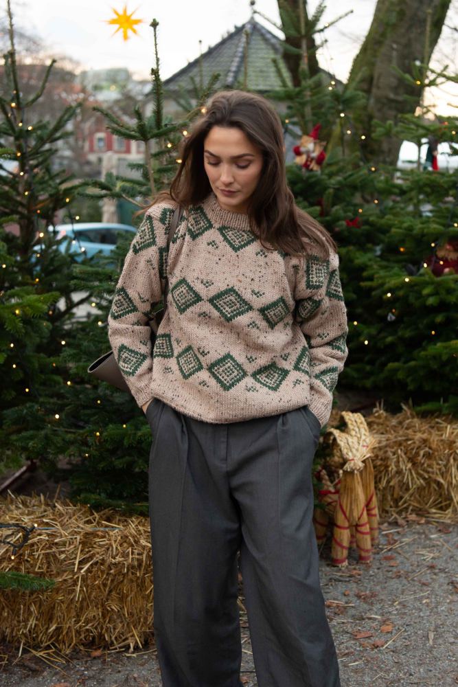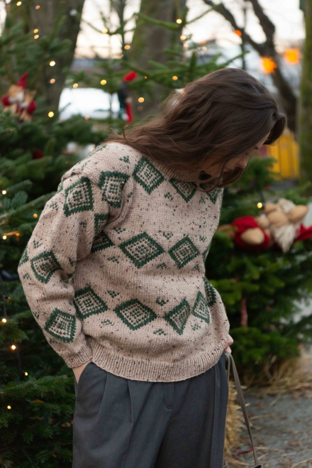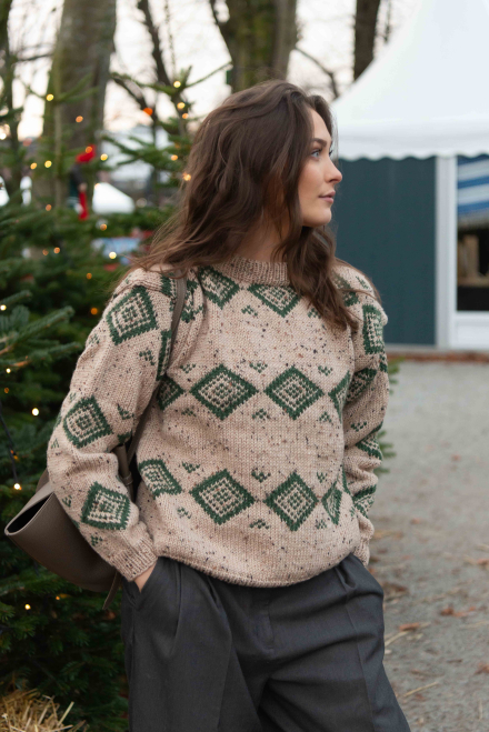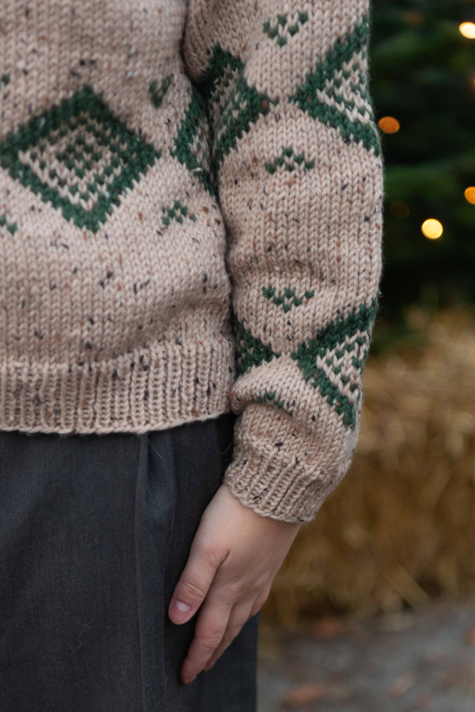 Du kan selv ændre farven på strikkepakken; vælg først den størrelse du vil strikke, så vises udvalget af farver herunder. Bemærk! Strikkeopskriften leveres altid i strikkepakkens originale farver: lys beige og fyrregrøn