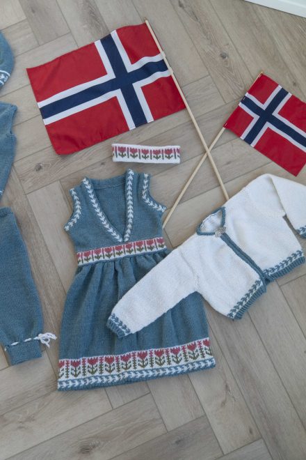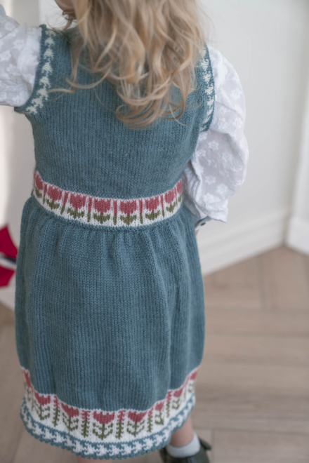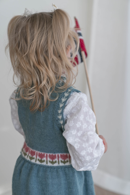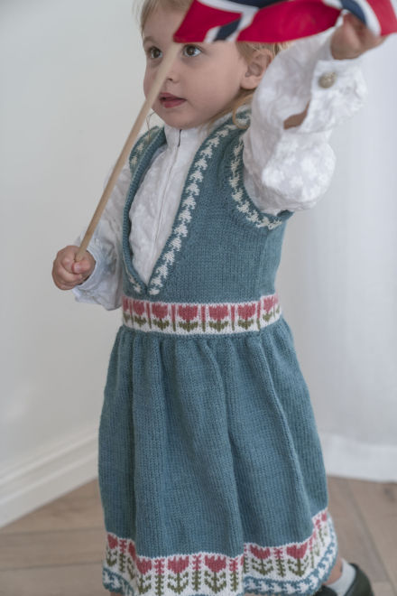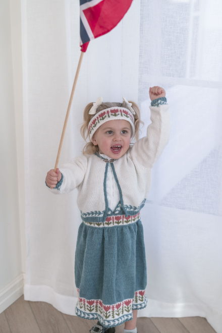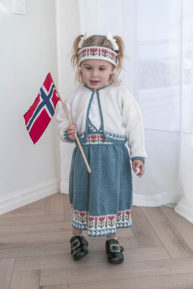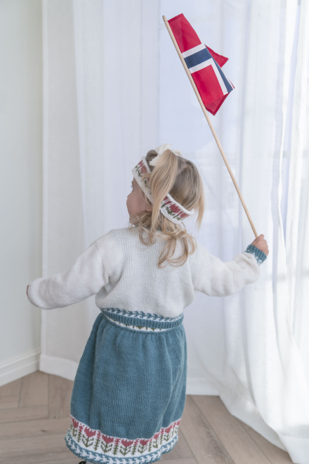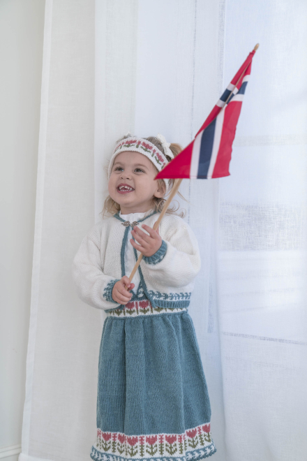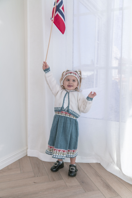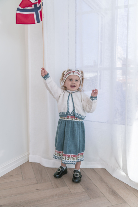 Du kan selv ændre farven på strikkepakken; vælg først den størrelse du vil strikke, så vises udvalget af farver herunder. Bemærk! Strikkeopskriften leveres altid i strikkepakkens originale farver: lys søgrøn, hvid, grøn og hindbærsorbet
