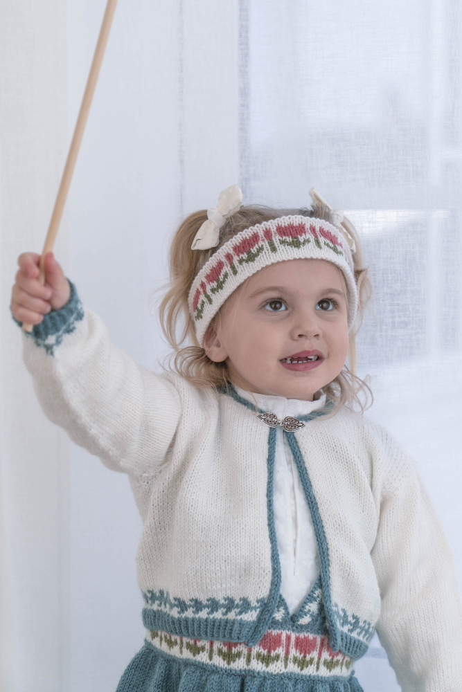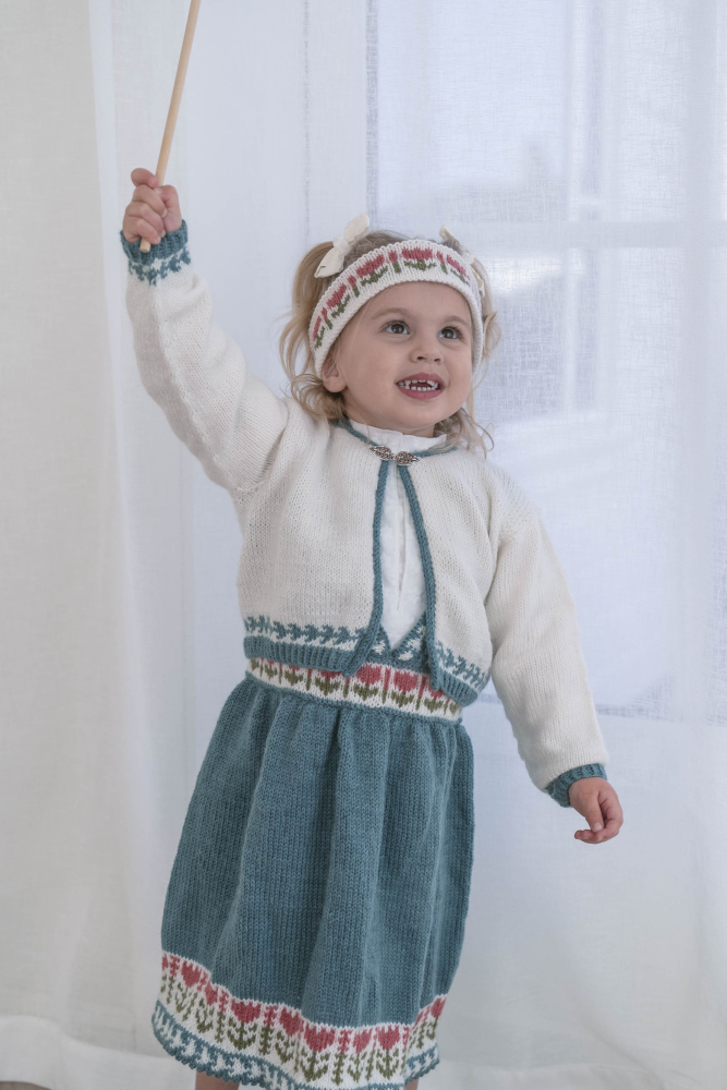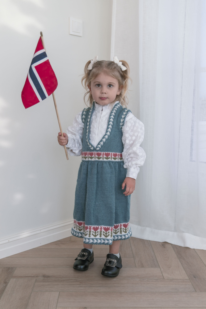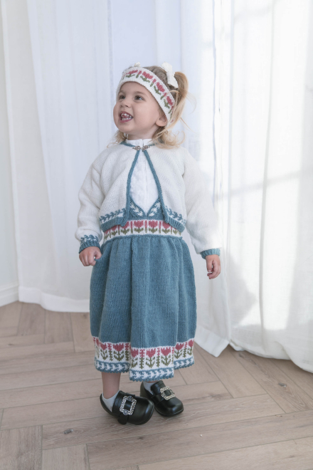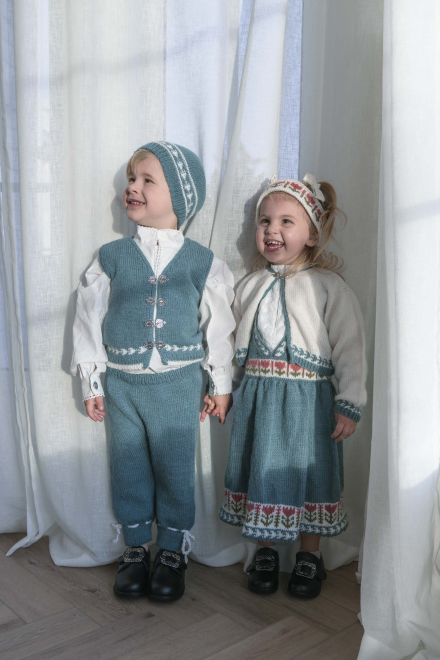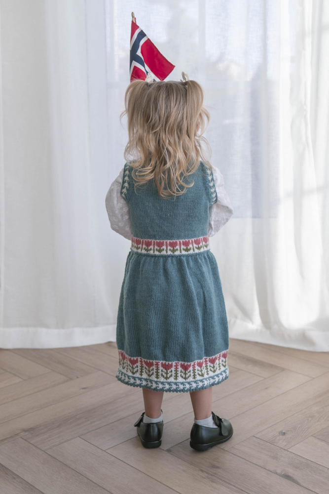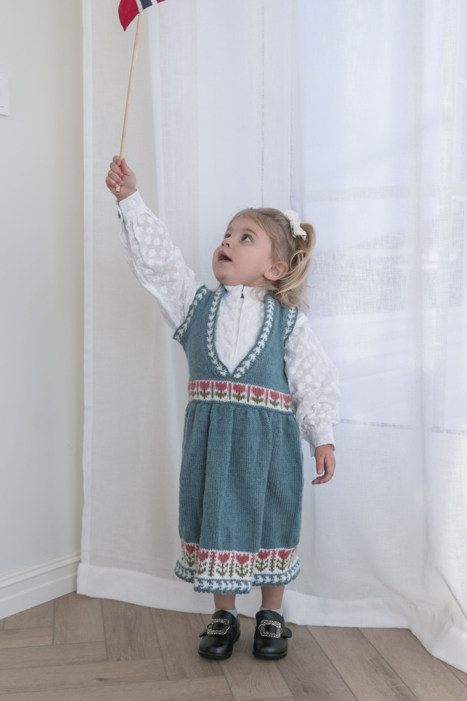 Du kan selv ændre farven på strikkepakken; vælg først den størrelse du vil strikke, så vises udvalget af farver herunder. Bemærk! Strikkeopskriften leveres altid i strikkepakkens originale farver: lys søgrøn, hvid, grøn og hindbærsorbet