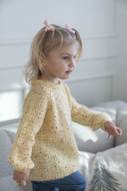 Du kan selv ændre farven på strikkepakken; vælg først den størrelse du vil strikke, så vises udvalget af farver herunder. Bemærk! Strikkeopskriften leveres altid i strikkepakkens originale farver: orkidé