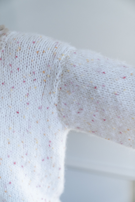 Du kan selv ændre farven på strikkepakken; vælg først den størrelse du vil strikke, så vises udvalget af farver herunder. Bemærk! Strikkeopskriften leveres altid i strikkepakkens originale farver: hvid og blush