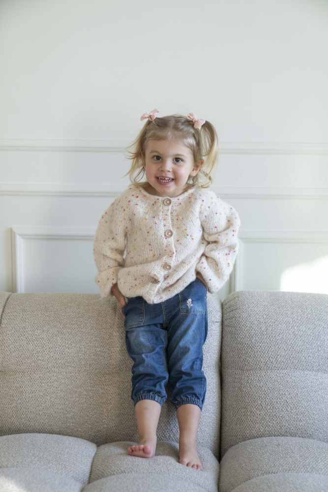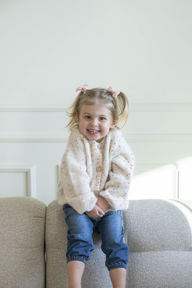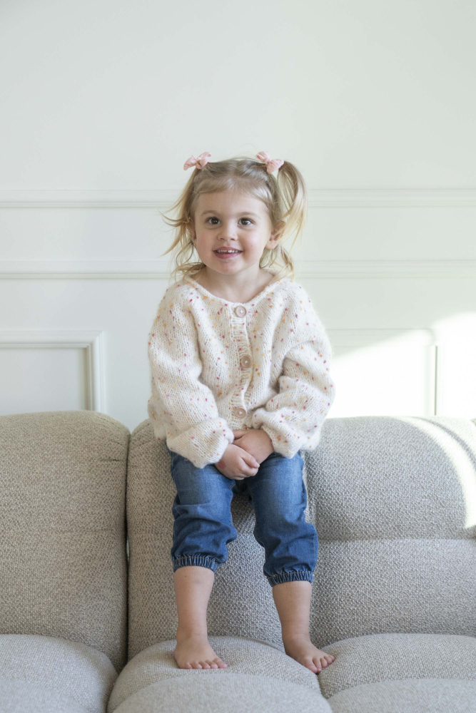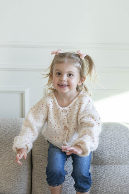 Konstanse Cardigan Kids Blush fra SD – se matchende til voksen her