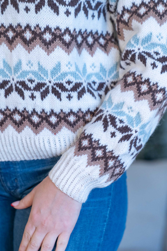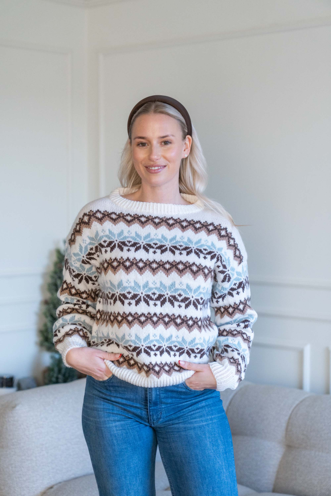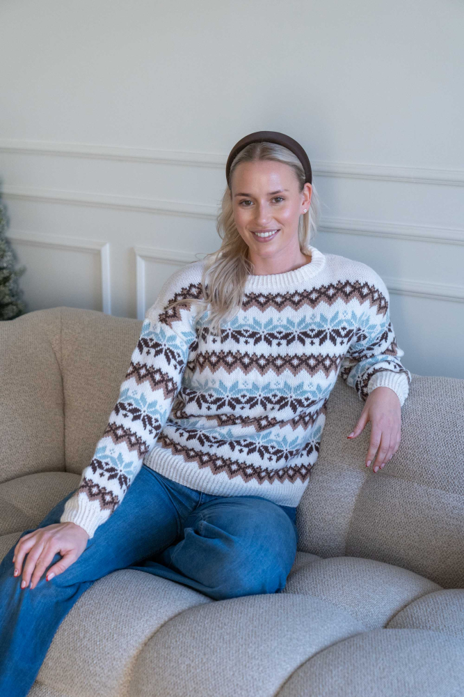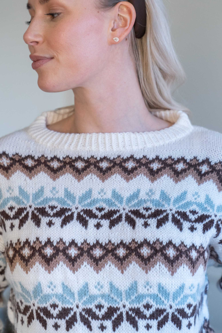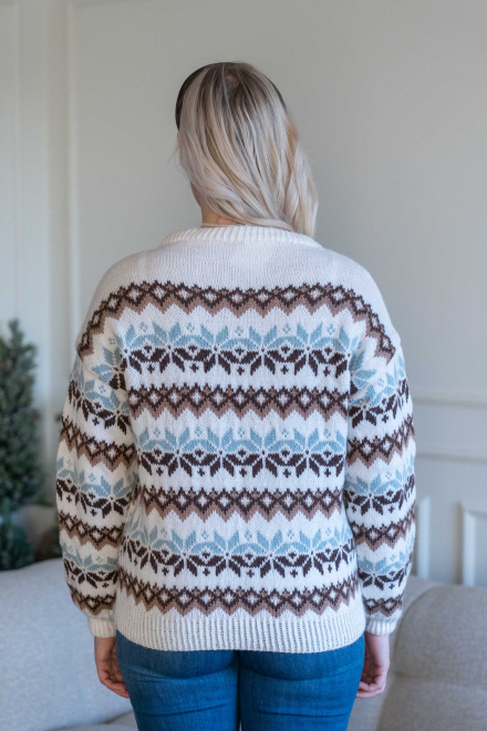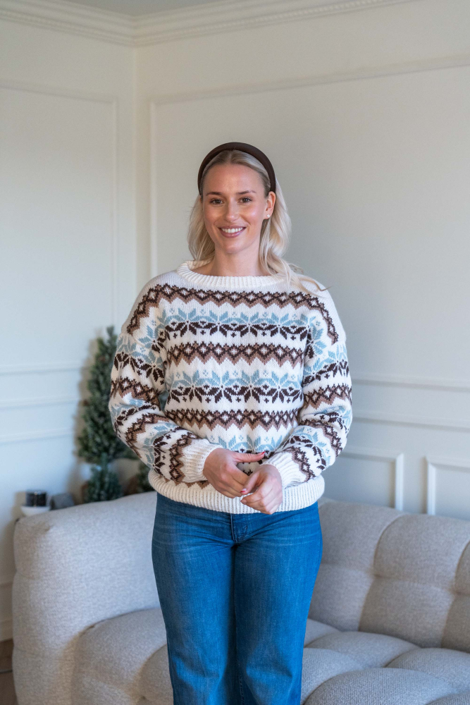 Rummelig, helmønstret sweater med skråskuldre og påsatte ærmer.