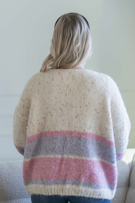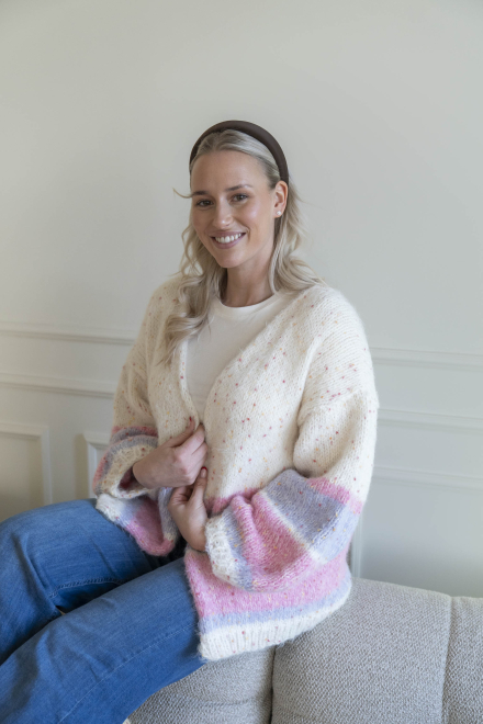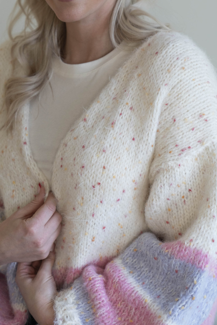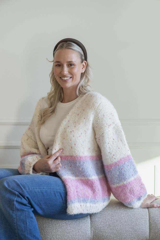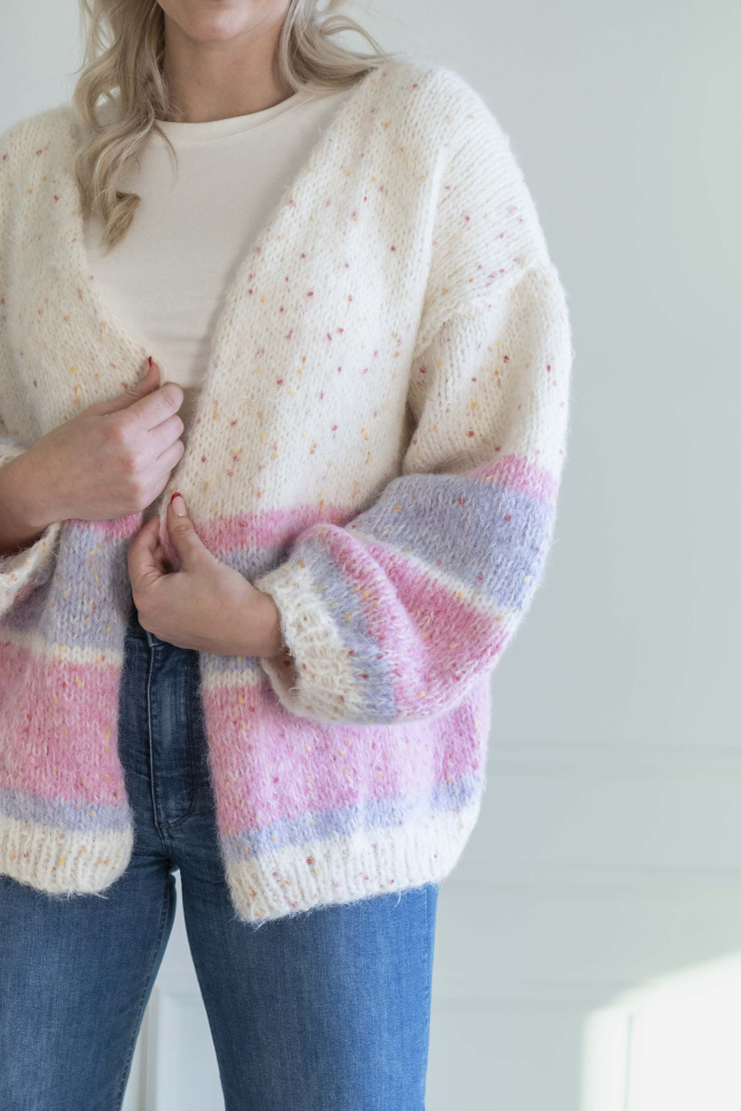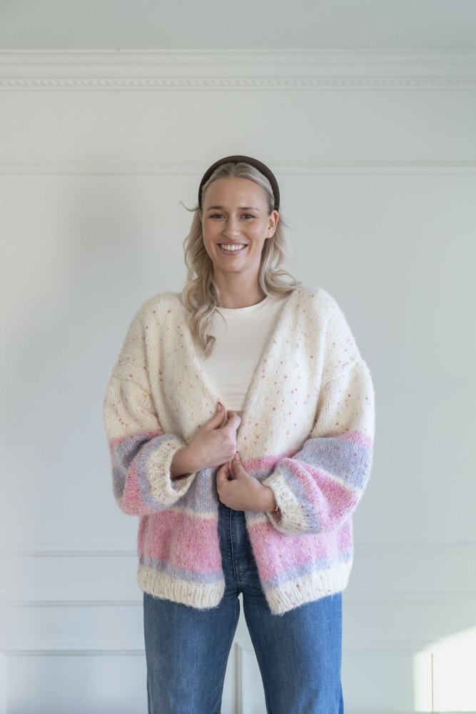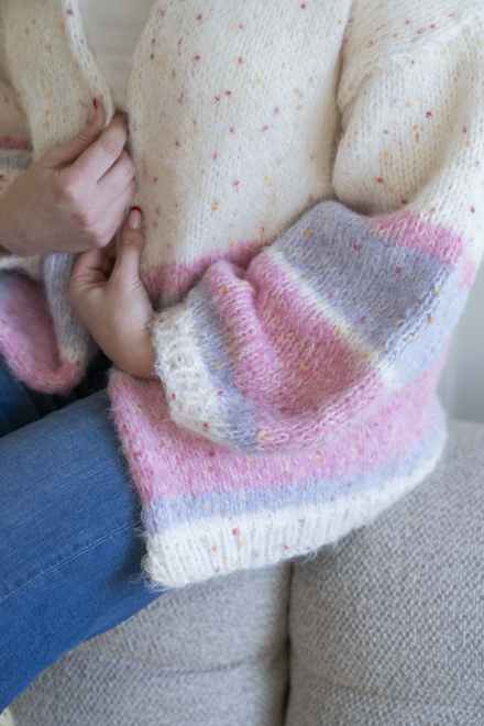 Du kan selv endre farge i strikkepakken ; velg da først størrelsen du ønsker å strikke, så kommer det opp fargevalg nedenfor. NB! Oppskrift vil alltid leveres i strikkepakkens originale farger: Hvit, Rosa, Lilla og Blush White
