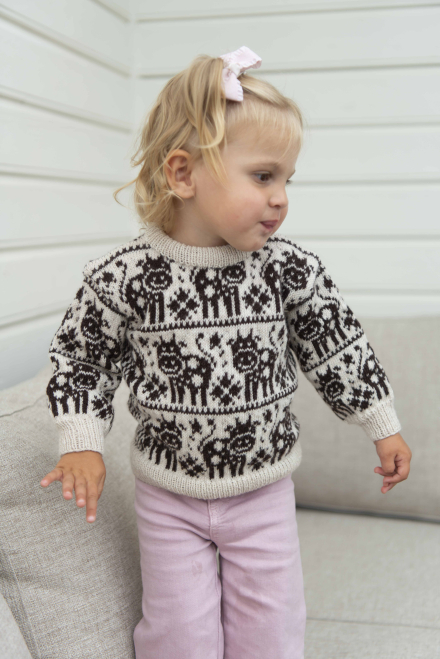 Du kan selv ændre farven på strikkepakken; vælg først den størrelse du vil strikke, så vises udvalget af farver herunder. Bemærk! Strikkeopskriften leveres altid i strikkepakkens originale farver: lys grå meleret og koksgrå meleret