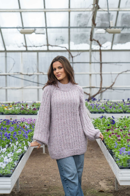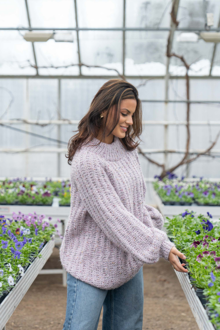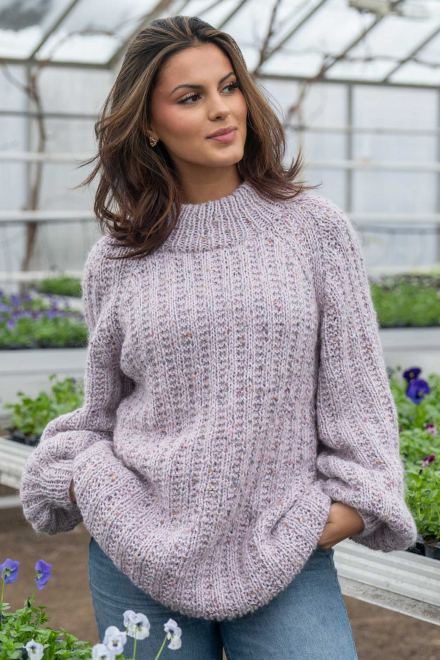 Du kan selv ændre farven på strikkepakken; vælg først den størrelse du vil strikke, så vises udvalget af farver herunder. Bemærk! Strikkeopskriften leveres altid i strikkepakkens originale farver: lys grå og orkidé