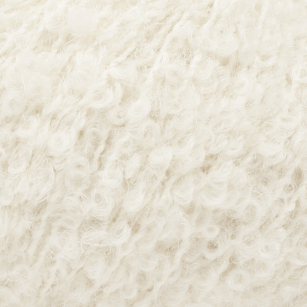 DROPS Alpaca Bouclé er et blødt og smukt garn spundet i utrolig fin alpaca. Fibrene i garnet er ubehandlede, hvilket betyder, at det kun er vasket og ikke har været underkastet kemisk behandling før farvning. Dette fremhæver fibrenes naturlige egenskaber, samtidig med at det giver en bedre form og tekstur. "Bouclé" er fransk for løkke og henviser til alle de små løkker af ren alpaca, der danner garnnøglen. Bindetråden er en blanding af uld og nylon og gør garnet ekstra holdbart og stærkt. Garnet er spundet af 2 tråde og kombinationen af alpaca og bouclé giver et meget blødt garn med fremragende ydeevne og fantastisk effekt. Tøj strikket i DROPS Alpaca Bouclé er lette og luftige. DROPS Alpaca Bouclé findes ikke kund i ensfarvede farver, men også i miksede farver. Mix-farverne fremstilles ved at karte farverne sammen, inden garnet spindes.