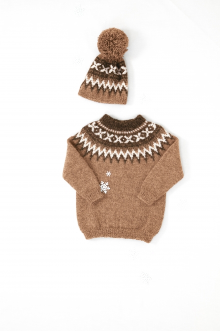 Du kan endda ændre farven på strikkepakken; vælg først den størrelse du vil strikke, så vises udvalget af farver herunder. Bemærk! Mønster bliver altid leveret i strikkepakkens originale farver.